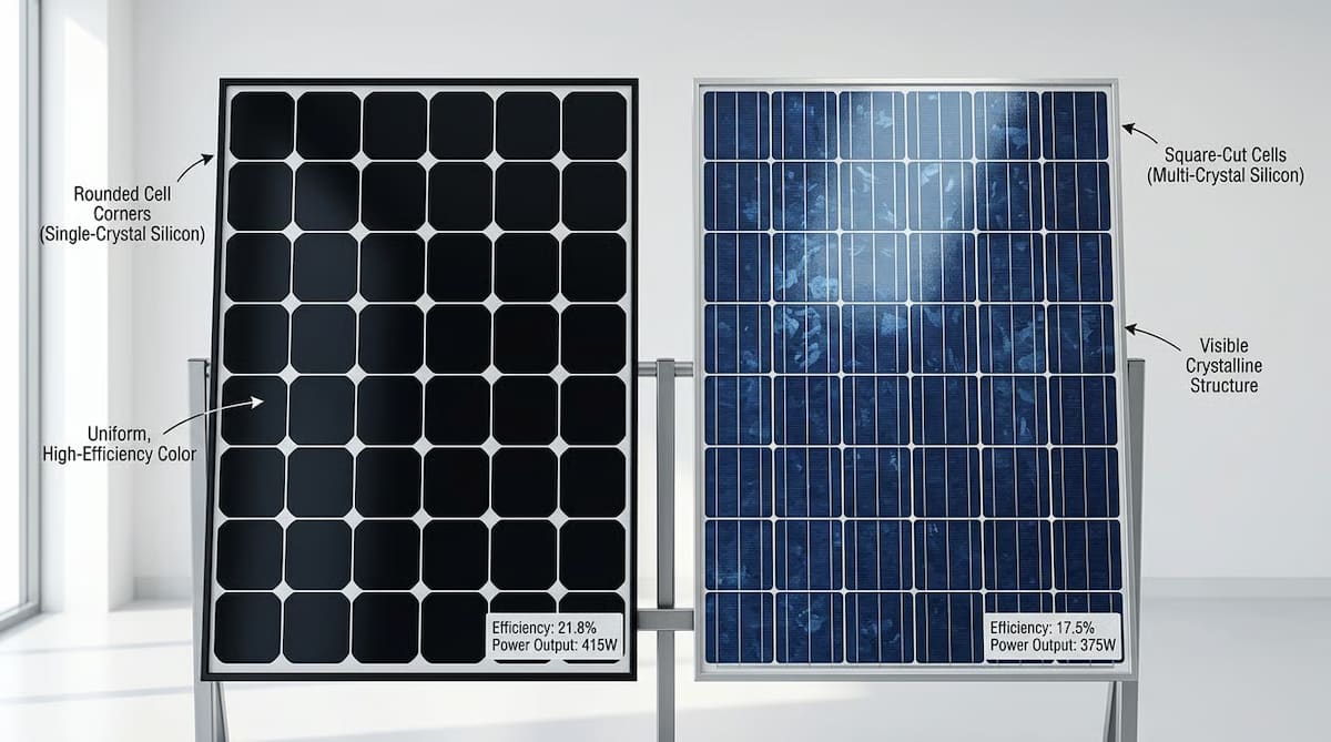 • Panouri policristaline: Construite din mai multe cristale de siliciu topite împreună, cu aspect albăstrui caracteristic, eficiență de 13-18%, opțiune accesibilă financiar pentru suprafețe generoase.